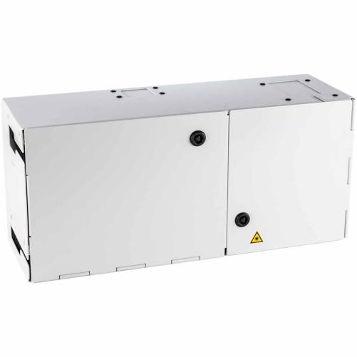 Ce PMI présente des compartiments séparés pour l'épissurage et le brassage. Chaque compartiment dispose d'une porte fermée par un système de clé triangle. Evolutivité possible en fonction du nombre d'opérateurs adressant l'immeuble. L'Accès des câbles optiques se fait en haut à gauche avec système d'arrimage. Dimensions normalisées, d'après les recommandations de l'ARCEP