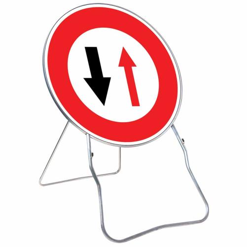 Pour une signalisation temporaire, ce panneau indique aux automobilistes la priorité à la circulation venant en sens inverse. En acier galavanisé avec double bord, il est rigide et non agressif. Le pied lyonnais lui assure une très bonne stabilité, notament grâce à son pied arrière se bloquant en position ouverte ou fermée par ergots.