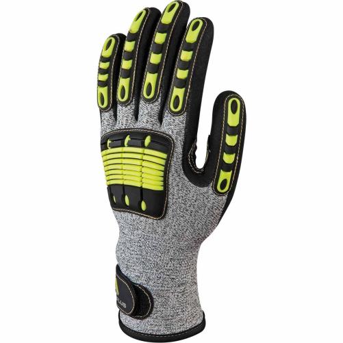 Gants anticoupure déstonés à protéger lesmains des techniciens et ingénieurs de terrain des risques mécaniques lors de leurs manipulations sur les chantiers. Ils bénéficient de renforts sur le dos ainsi que sur les doigts pour une meilleure défense contre les impacts et pincements, protégeant ainsi les articulations. Les coutures en Kevlar et le renfort entre le pouce et l'index améliorent la robustesse des gants pour une durée de vie accrue. Une première enduction en nitrile lisse sur la paume et le bout des doigts les rend imperméables aux huiles et hydrocarbures. Une seconde enduction en nitrile mousse leur procure une bonne adhérence et permet une bonne prise en mains des objets. Les manchettes de 8cm prolongent les gants permettent d'englober les poignets pour leur offrir également une protection contre les coupures.