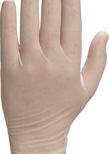 Boîte de 100 gants jetables ambidextres, souples et élastiques. Ces gants en latex poudrés sont étanches à l'air et à l'eau.