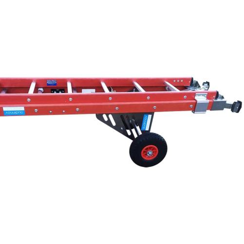 Chariot de transport compatible avec les modèles Aérostep 4,9 mètres et Aérostep 6 mètres de la marque AUDINNOV. Ses roues larges facilitent les déplacements sur les chantiers. Le chariot dispose d'un système d'accroche pour fixer et stabiliser l'échelle afin d'effectuer le transport facilement.