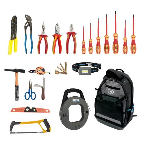 Le sac à dos d'électicrien PREMIUM comprend l'ensemble des outils isolés de haute qualité pour les installations électriques.