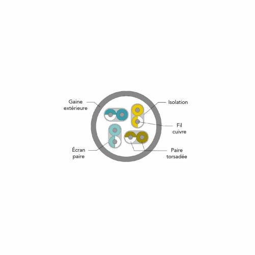 Câble RJ45 CAT6A U/FTP 1x4p AWG23 Eca LSZH 500MHz PoE bleu 305m