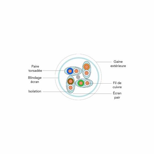 Le câble RJ45 de catégorie 6 blindage F/FTP présente une structure tressée 2 x 4 paires, une gaine LSZH, euroclasse Dca, et est parfaitement adapté aux interconnections de terminaux dans les réseaux LAN exigeants en terme de performance. Ce câble Cat6 blindé permet le transfert de données jusqu'à 10Gbit/s et est une solution de connectivité adaptée pour les réseaux Ethernet RJ45 pour entreprises et administrations.