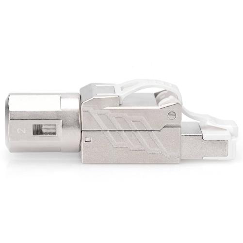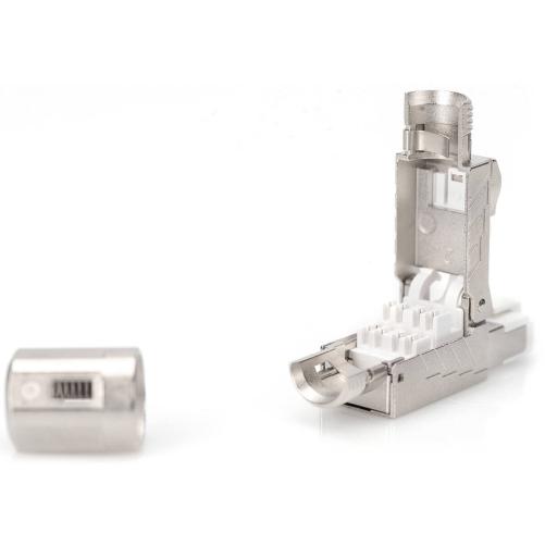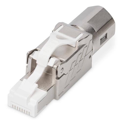 Le connecteur de terrain CAT8.l blindé de DIGITUS permet un raccordement sans outil et une connexion stable et durable grâce à son boitier métallique robuste.