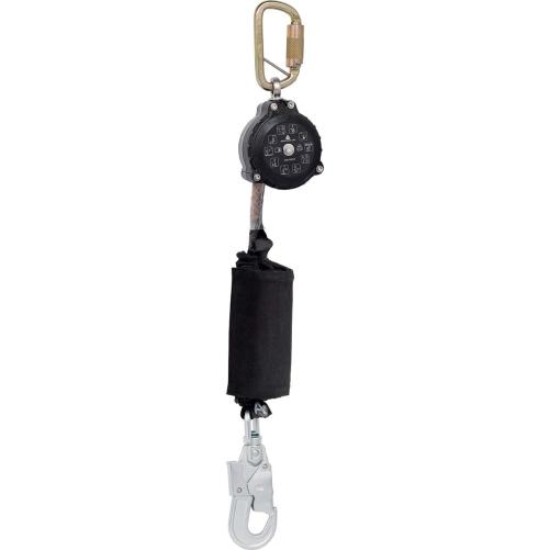 Antichute à rappel automatique spécialement conçu pour le travail en nacelle. L'ensemble se compose d'une sangle, d'un émerillon, d'un connecteur et d'un crochet avec émerillon. Cet antichute permet de se déplacer librement sur une plateforme nacelle, ses émerillons évitent à l'antichute les noeuds et le garde droit.