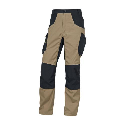 Pantalon de travail beige et noir, très pratique avec de nombreuses proches. Triples coutures et tissu de qualité = excellente durée de vie. Il dispose d'emplacement pour y insérer des protège genoux afin d'offrir plus de confort lors des travaux à mi hauteur.