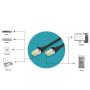 Chaque cordon RJ45 est doté d'un manchon de protection anti-pli injecté avec décharge de traction qui bénéficie d'un levier à cran et empêche l'enchevêtrement de câbles et protège le décrochage du levier à cran du connecteur.