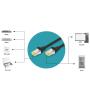 Chaque cordon de brassage RJ45 est doté d'un manchon de protection anti-pli injecté avec décharge de traction qui bénéficie d'un levier à cran et empêche l'enchevêtrement de câbles et protège le décrochage du levier à cran du connecteur.