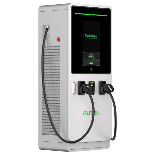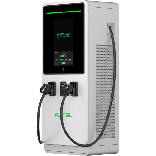 La borne de recharge double Maxicharger DC Fast de autel offre une puissance allant de 60kW à 120 kW en courant continu (CC).