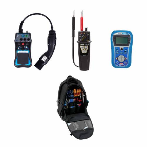 Performant et pratique, ce pack est universel : il vous permet de tester, contrôler et vérifier la bonne installation des bornes AC de recharge pour véhicules électriques, mais aussi de garder sous la main l'outillage isolé et absolument nécessaire pour toute intervention IRVE.
