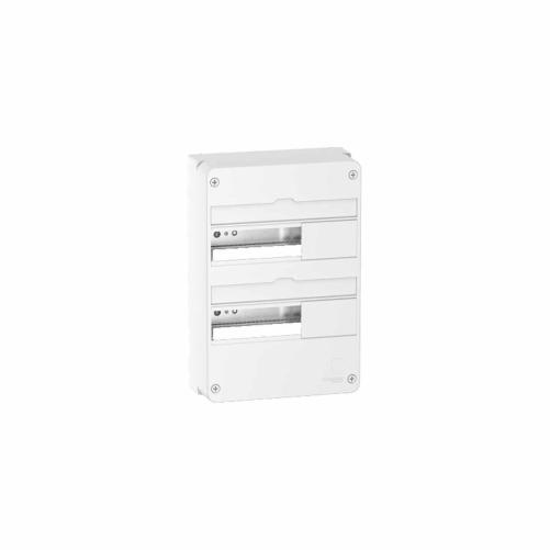 Le coffret divisionnaire en saillie blanc Resi 9 de Schneider Electric offre confort, économie d'énergie et sécurité. Le coffret se monte facilement sur rail DIN ou sur goulotte avec une fixation sans outil.