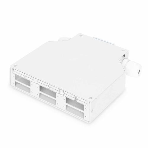 Boîtier rail DIN/ boîtier d'épissure fibre optique pour 6 raccords SC/DX avec porte épissures.