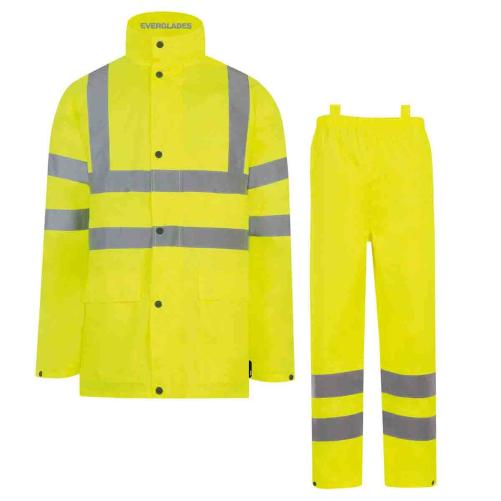 Cet ensemble de pluie permet de protéger les techniciens contre les intempéries. Il contient une veste à capuche fixe et un pantalon tous deux haute visibilité. Les bandes rétro-réfléchissantes cousues sur les emplacements les plus visibles du vêtement offre plus de sécurité la nuit en permettant aux techniciens d'être aperçus de loin.