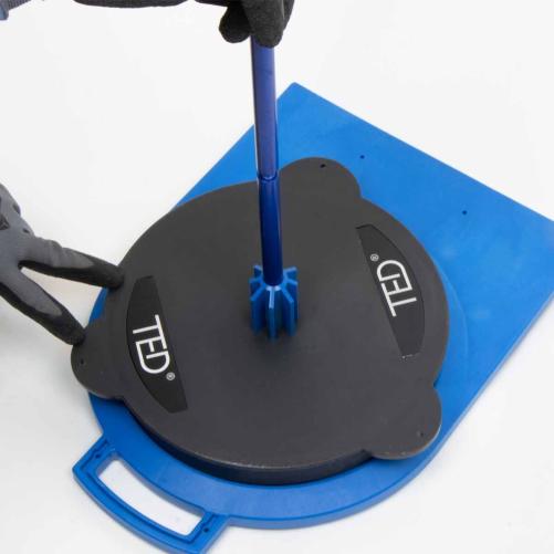 Équipé de pieds antidérapants, le dérouleur D-Roll TED® est aussi à l’aise en intérieur qu’en extérieur. Compact et léger il se range facilement dans un sac à dos et se transporte d’une seule main grâce à sa poignée.