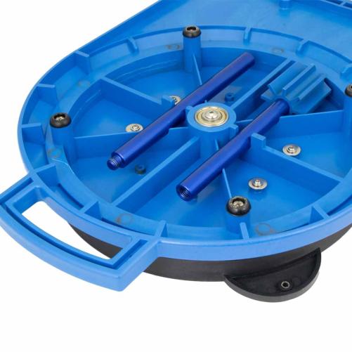 - Un compartiment de rangement de ses accessoires : les 2 barres de l'axe et le mandrin se rangent sous le plateau