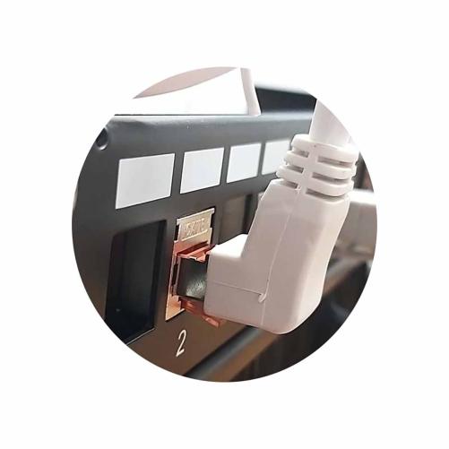 Le connecteur coudé RJ45 à une extrémité et le connecteur droit RJ45 à l'autre offrent une grande flexibilité pour une installation simple et propre, même dans les espaces restreints. Sa gaine LSZH (Low Smoke Zero Halogen) permet une utilisation sûre dans des environnements sensibles au feu, tout en réduisant les émissions de fumée et de gaz toxiques.