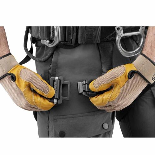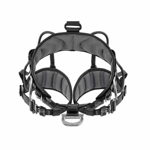 La version européenne est équipée de boucles FAST automatiques aux cuisses pour un enfilage rapide avec les pieds au sol, et d’un dos en mousse respirante pour un confort optimal pendant les longues périodes de suspension.