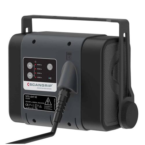 Ce projecteur de chantier offre une puissance d'éclairage exceptionnelle tout en restant compact et flexible pour permettre une excellente mobilité lors de tous vos travaux. À l'aide des dernières technologies SCANGRIP, il peut fournir jusqu'à 40 000 lumens sur un angle de 120° pour illuminer de larges zones de travail. Son faible poids et sa poignée intégrée facilitent le transport et le positionnement, notamment sur le mât SCANGRIP compatible, permettant de placer le projecteur en hauteur. Robuste, le projecteur SITE LIGHT 30 est normé IP65, c'est à dire étanche à l'eau et à la poussière et résiste à des températures extrêmes (-25 à 40°C). Ces qualités lui offrent une excellente durée de vie et un éclairage constant. Enfin, une fonction BLUETOOTH vous permet d'allumer et éteindre le projecteur et de régler sa luminosité sur 4 niveaux d'intensité à l'aide de votre Smartphone.