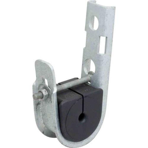 Les dispositifs de suspension de la famille J se composent d'un berceau en acier galvanisé et d'une fourrure de protection élastomère rapportée. La fermeture du berceau se fait par serrage d'un boulon.