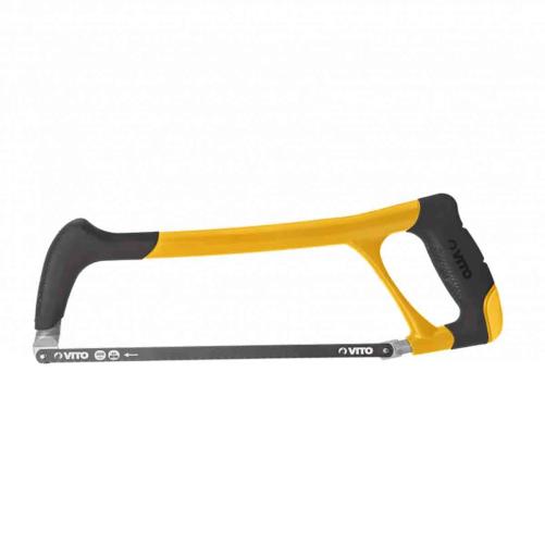Scie à métaux de 420 mm livrée avec une lame. Sa lame est orientable par pas de 45° pour arasage. Le réglage de la tension de la lame est faisable directement dans la poignée.