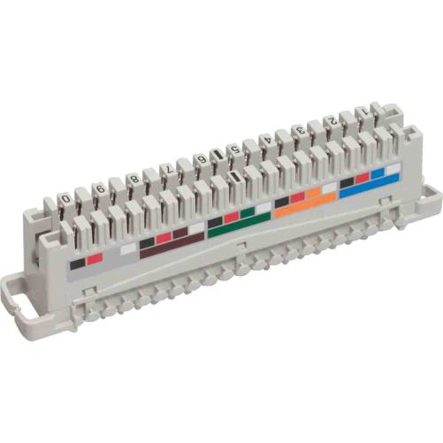 La réglette de raccordement de 8 paires utilise la technologie CAD avec un outil. Ces réglettes, de haute fiabilité, sont utilisées en sous-répartition ou en distribution pour raccorder des câbles cuivre de 0,4 à 0,6mm.