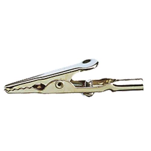 Pince crocodile avec connecteur femelle 4mm possèdant une protection électrique de 33 V~ / 70 V continu et une intensité de 10A.