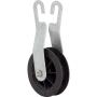 La poulie RO200 est constituée d'un réa en thermoplastique de Ø 150mm avec un diamètre en fond de gorge de 80mm et de 2 bras articulés en acier galvanisé. On l'utilise aussi bien pour le déroulage que pour la suspension temporaire ou permanente de câbles ADSS sur portées < 70m.