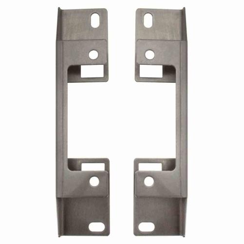 Support métallique pour la fixation des boîtiers de protection d'épissures optiques. Peut être fixé sur façade ou sur poteau au moyen de vis ou de feuillard.
