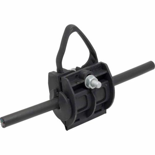 Ce dispositif de suspension, également connu en tant que ADSS clamp, est prévu pour les câbles FTTH ronds de diamètre 12 à 15mm sur courtes portées (inférieures à 70m). L'installation se fait sur tous types de support équipé d'un trou de 10mm minimum.