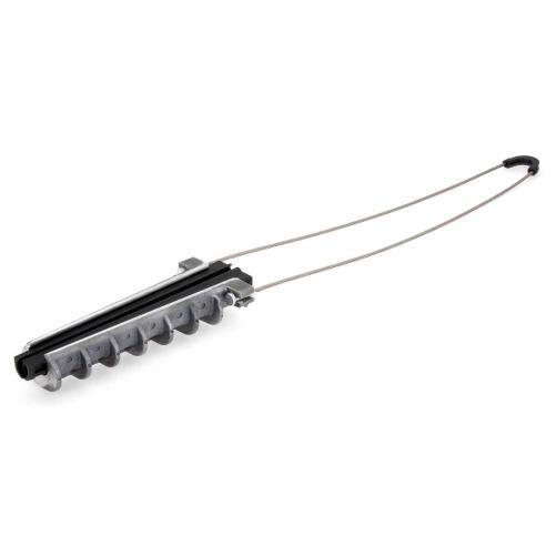 Ces pinces d'ancrage sont constituées d'un corps de forme conique ouvert, d'une mâchoire composée de deux coins plastique et d'une anse souple. Elles sont utilisées pour l'arrêt des câbles optiques aériens fig-8 à porteur diélectrique et isolant PEHD sur réseaux de distribution (jusqu'à 90m) et de transport (jusqu'à 180m). Le serrage conique automatique ne nécessite aucun outil de pose et réduit considérablement le temps de mise en oeuvre.