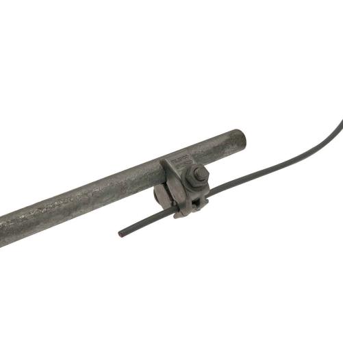 Cosse destinée au raccordement électrique des câbles de terre sur les piquets de terre ronds. Modèle type griffe de connexion en zamak.