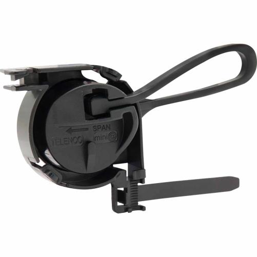Dispositif de branchement à tambour pour câble de branchement optique rond de diamètre de 3 à 4mm destiné aux courtes portées. S'installe sur tout type de support équipé d'un trou de 10mm minimum.
