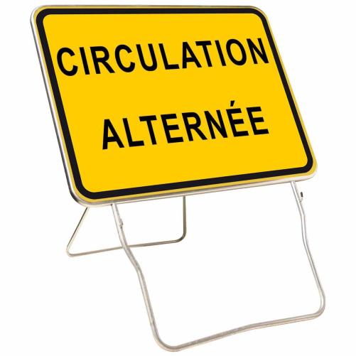 Panneau temporaire KC1 800x600 Classe 2 ''Circulation alternée'' sur pied lyonnais