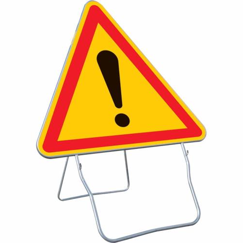 Ce panneau de signalisation temporaire indique un danger à venir sur la voie. Bien visible, il permet d'inciter les automobilistes à ralentir au niveau du chantier et à redoubler de vigilance. Grâce à sa légèreté et à sa poignée arrière, il se transporte facilement tout en restant stable une fois posé. Des ergots permettent de bloquer le pied arrière en position ouverte ou fermée.