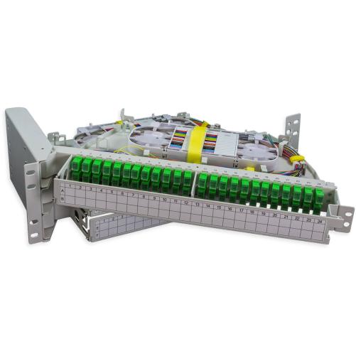 Tiroirs pivotants spécifiquement conçus pour le brassage des fibres optiques dans les réseaux d'accès FTTH. Principalement destinés aux armoires de rue, ils peuvent également être installés en baie ou en châssis.