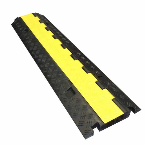 Protège-câbles permettant le passage de poids lourds 44 tonnes. Ce protège-câbles de 1m en élastomère noir avec capot jaune sur charnière est doté d'un système à queue d'arronde qui permet d'emboîter les éléments.
