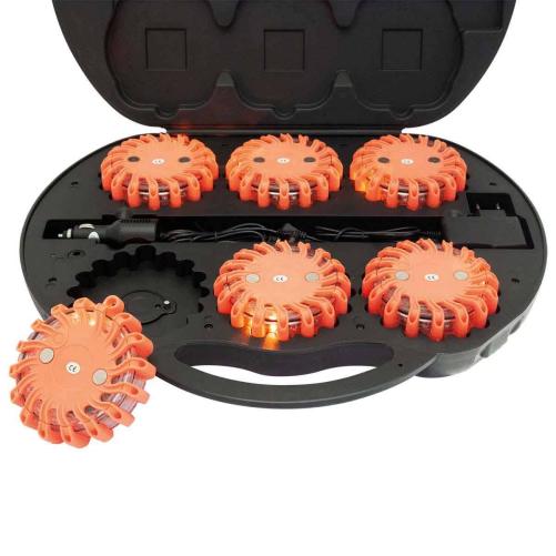 Valise 6 gyrophares LEDS oranges aimantés et étanches avec chargeur