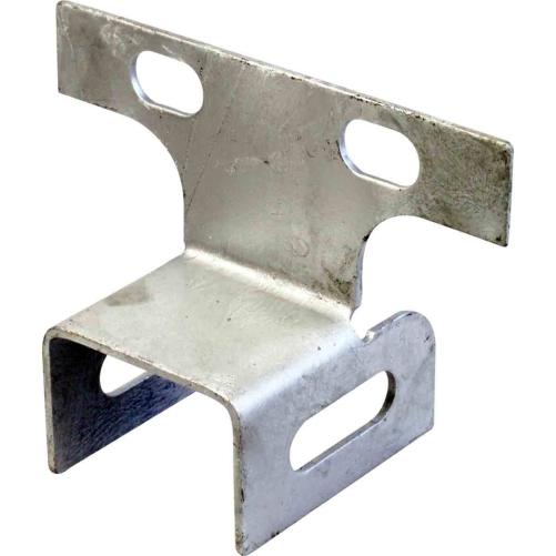 Deux semelles équerres sont nécessaires pour la fixation d'une traverse appui commun sur poteau béton. La fixation de la traverse se fait par deux boulons d'assemblage 1/12. La semelle se cercle sur le poteau à l'aide de deux feuillards 20 x 0,7mm.