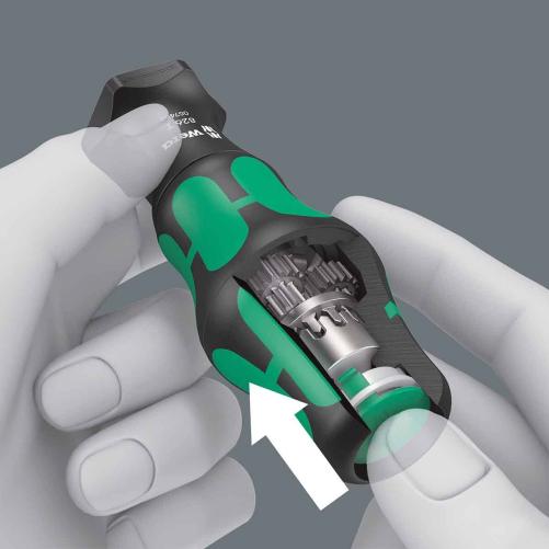 Idéal pour les vissages d'approche, ce jeu de tournevis à embout permet un vissage 4 fois plus rapide à l'aide de sa boite de vitesse intégrée dans le manche et facilement activable. D'une simple pression sur le dessus du manche, le tournevis passe en mode démultiplié et permet 4 rotations complètes de l'embout en une seule rotation du manche. Les 18 embouts différents permettent une utilisation sur de nombreuses vis pour un maximum de polyvalence. Chaque embout est équipé d'un code couleur permettant l'identification simple des empreintes et dimension, et la technologie Rapidaptor garantie un changement rapide des embouts