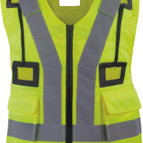 Gillet haute visibilité jaune fluorescent en polyester et coton permet d'être repéré facilement sur les chantiers et voirie. Compatible avec tout type de harnais.