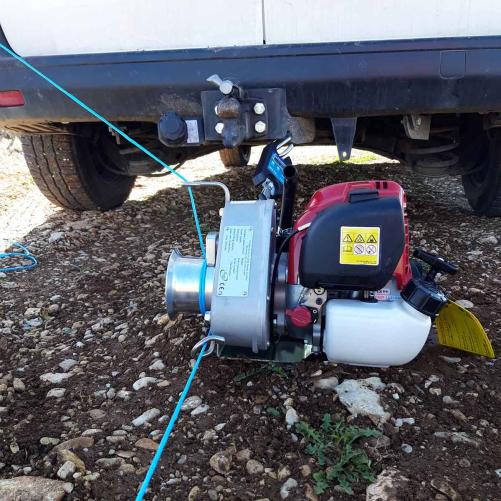 Grâce à l'élingue, il est possible de s'arrimer sur tous types de point d'ancrage en zone urbaine comme en campagne : poteau, anneau de tirage, arbre... Le treuil peut avec la plaque d'ancrage également s'installer directement sur la boule de remorquage du véhicule d'intervention lorsque celui-ci est garé près de la chambre de tirage.