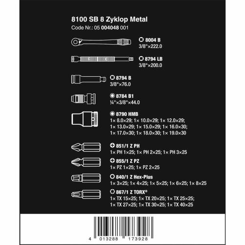 Jeu cliquet 3/8 WERA Zyklop Metal 8 à 19mm + embouts