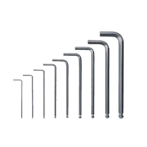 Jeu de 9 clés mâles 6 pans longues tête sphérique.
