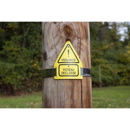 Étiquette en PVC rigide pour poteau avec le message "Poteau déclassé". La matière de l'étiquette permet le marquage laser ou le poinçonnage.