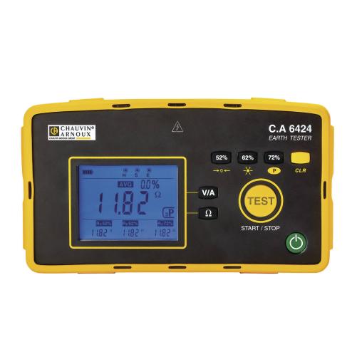 Contrôleur de terre polyvalent pour mesures de courant, mesures de tension, et mesures de terre 2P & 3P. Grâce à son boîtier robuste et étanche, le mesureur de terre C.A 6424 sans piquet est conçu pour une utilisation intensive sur tout type de chantier.